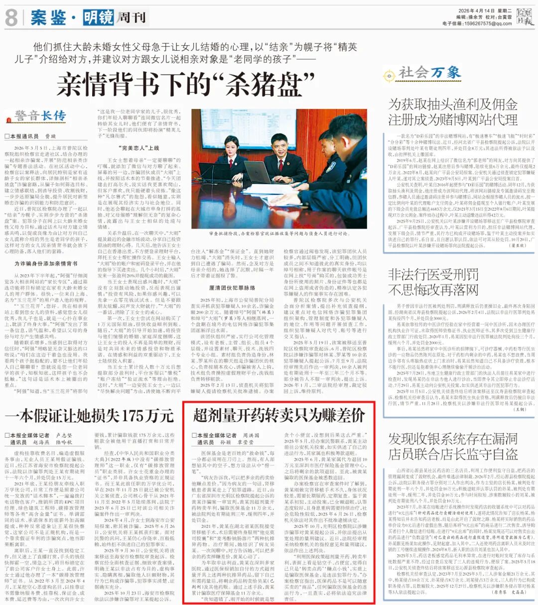 “利用医保政策超剂量开药、转卖牟利,表面上看是钻空子、占便宜,觉得自己只是‘转卖点药’‘赚点小钱’,实质上是骗取医保基金,是违法犯罪行为。”办案检察官指出,医保药品不是可以随意买卖的“商品”,任何骗取医保基金的违法行为,一旦查实,必将依法追究法律责任。