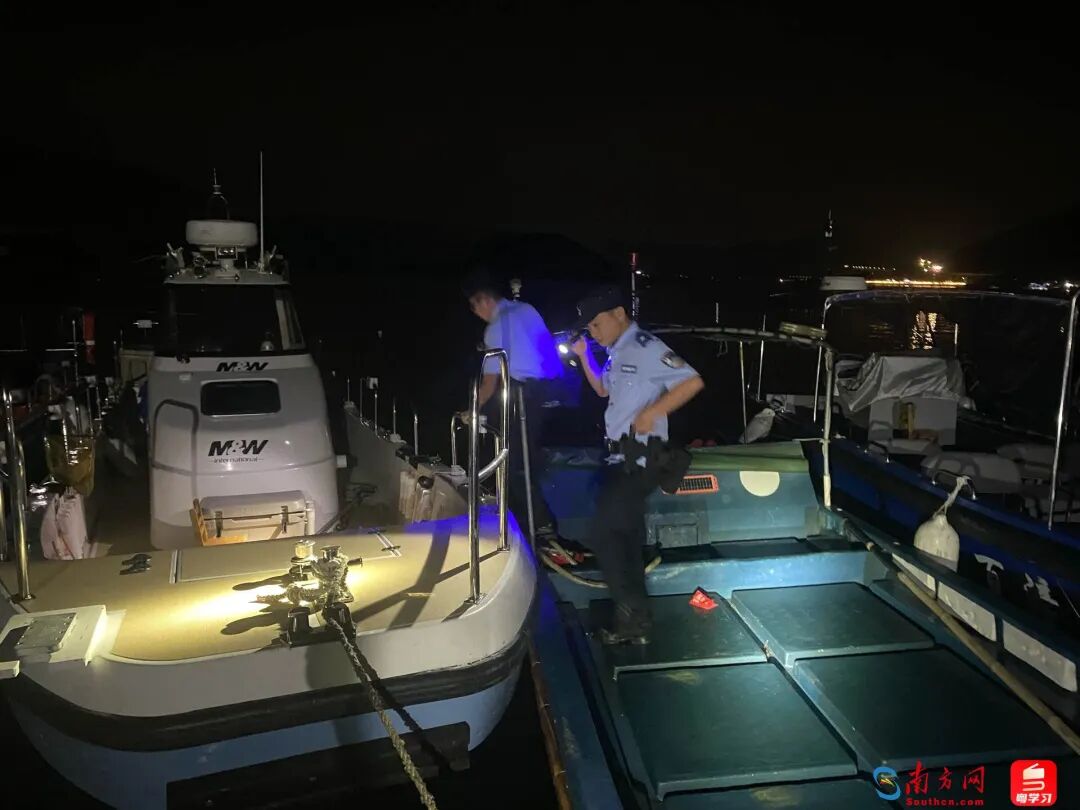 “雷霆2023”联合打击行动中,惠州公安机关对可疑游艇开展清查