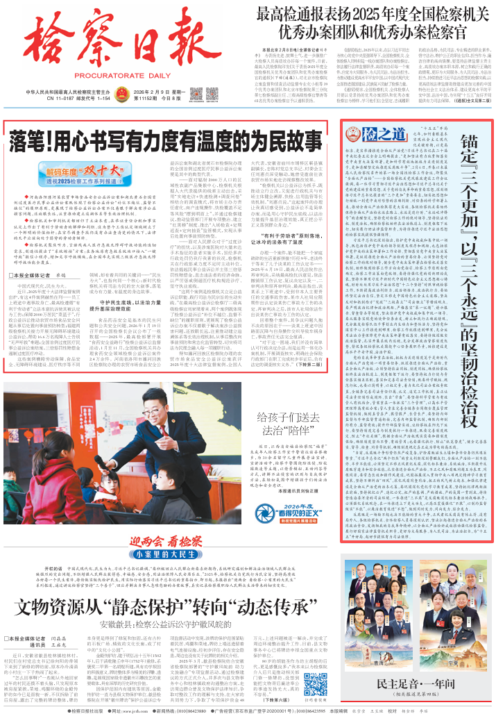 “十五五”开局之年,如何着眼基本实现社会主义现代化关键时期,以更高标准、更实举措推进全面从严治党?习近平总书记在二十届中央纪委五次全会上明确提出,“更加坚决有力地贯彻落实党中央重大决策部署,更加科学有效地把权力关进制度笼子,更加清醒坚定地推进反腐败斗争”。2月6日,开春以来最高人民检察院召开的第一场全国性检察工作会议,即聚焦“全面从严治检”——全国检察机关党风廉政建设工作会议强调,要一体学习贯彻习近平法治思想和习近平总书记关于党的建设的重要思想、关于党的自我革命的重要思想,深刻领悟习近平总书记提出的“三个更加”重要要求,切实把思想和行动统一到党中央对形势的准确判断、对任务的科学部署上来,推动全面从严治检取得更大实效。各级检察机关要始终保持全面从严治检永远在路上、永远是进行时、“永远吹冲锋号”的清醒坚定,坚持党对检察工作的绝对领导,坚持依法用权、制度治权,确保检察权始终在法治轨道上、制度框架下运行,切实履行好法律监督职责,为持续推进习近平法治思想的检察实践提供坚强保障。