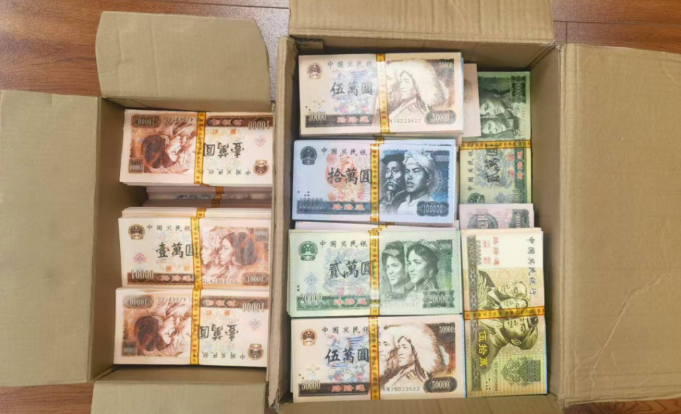 图为中国人民银行等部门公布的非法制售“人民币版”冥币典型案例中的涉案冥币。图片来自中国人民银行微信公众号。
